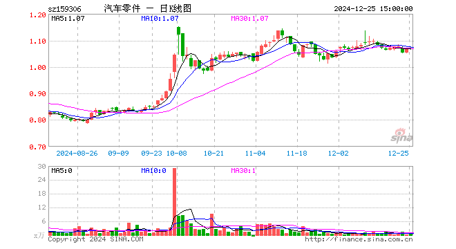 12月25日,汽车零件ETF(159306)涨0.00%,成交额67.69万元。当日份额减少100.00万份,最新份额为1624.46万份,近20个交易日份额减少200.00万份。最新资产净值计算值为1745.16万元。