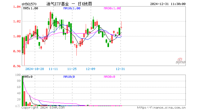 12月31日,截止午间收盘,油气ETF基金(561570)涨1.10%,报1.012元,成交额18.03万元。油气ETF基金(561570)重仓股方面,中国石化截止午盘涨0.30%,中国海油涨0.54%,中国石油涨0.00%,广汇能源涨1.20%,招商轮船跌0.15%,中远海能跌1.26%,杰瑞股份涨0.78%,恒力石化涨0.85%,东方盛虹跌1.31%,卫星化学涨0.16%。