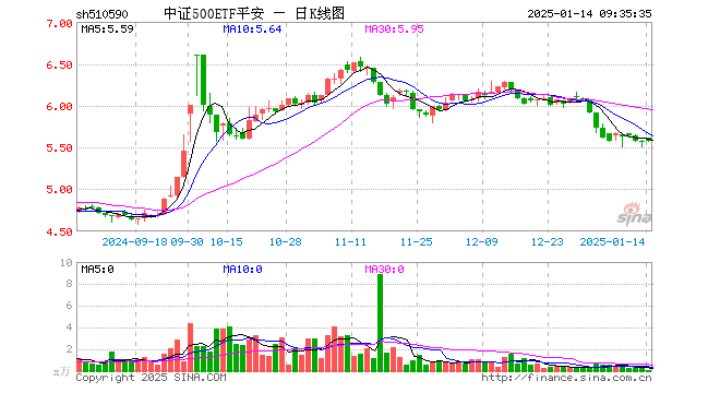 中证500ETF平安(510590)业绩比较基准为中证500指数收益率,管理人为平安基金管理有限公司,基金经理为李严,成立(2018-03-23)以来回报为4.28%,近一个月回报为-9.79%。