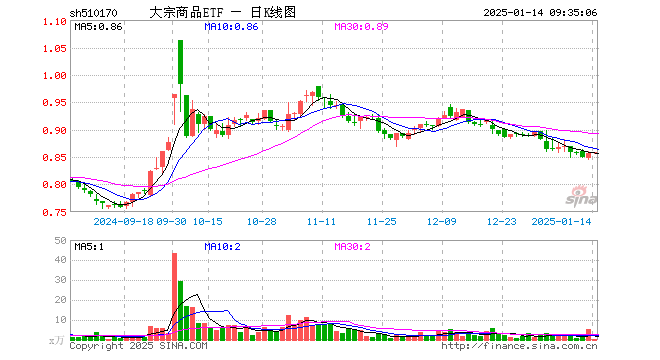 1月14日,大宗商品ETF(510170)开盘涨0.00%,报0.857元。大宗商品ETF(510170)重仓股方面,明泰铝业开盘涨0.90%,西藏珠峰涨0.10%,包钢股份涨0.00%,宝钛股份涨0.15%,南山铝业跌0.26%,君正集团涨0.61%,厦门钨业跌0.10%,北方稀土涨0.28%,中煤能源涨0.53%,西部超导涨0.24%。