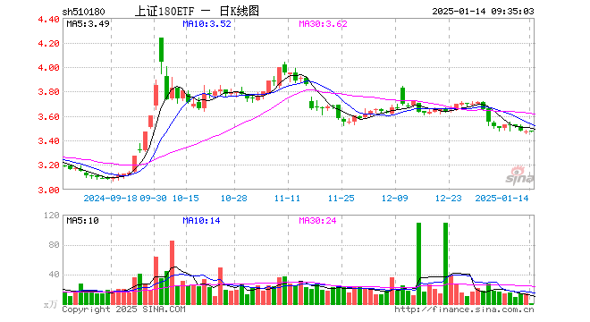 1月14日,上证180ETF(510180)开盘涨0.26%,报3.479元。上证180ETF(510180)重仓股方面,贵州茅台开盘涨0.07%,中国平安涨0.00%,招商银行涨0.05%,长江电力跌0.03%,紫金矿业跌0.67%,兴业银行涨0.21%,中信证券涨0.41%,恒瑞医药涨0.00%,工商银行跌0.15%,交通银行涨0.41%。