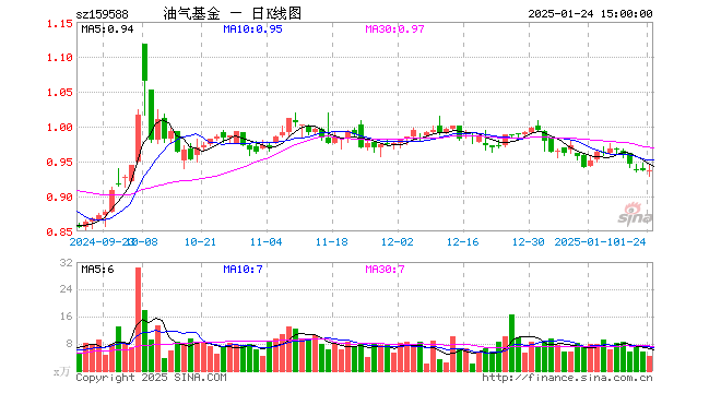 1月24日,石油天然气ETF(159588)涨0.00%,成交额400.97万元。当日份额减少350.00万份,最新份额为6878.49万份,近20个交易日份额减少100.00万份。最新资产净值计算值为6443.08万元。