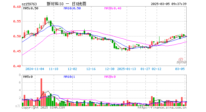 3月5日,新材料ETF基金(159763)开盘跌0.60%,报0.498元。新材料ETF基金(159763)重仓股方面,宁德时代开盘涨0.00%,万华化学跌0.01%,北方华创涨0.02%,隆基绿能跌0.34%,通威股份跌0.42%,三环集团涨0.05%,三安光电跌0.08%,华友钴业涨0.71%,宝丰能源涨0.60%,格林美跌0.15%。
