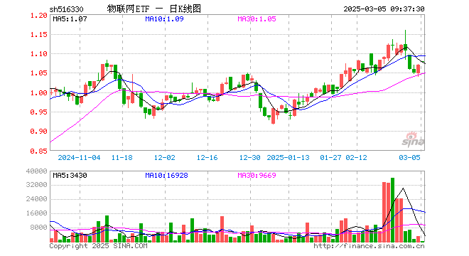 3月5日,物联网ETF(516330)开盘涨0.75%,报1.078元。物联网ETF(516330)重仓股方面,立讯精密开盘涨0.29%,中兴通讯跌0.03%,汇川技术跌0.77%,中际旭创涨0.51%,美的集团跌0.10%,韦尔股份跌0.81%,科大讯飞涨0.25%,海康威视跌0.16%,海尔智家涨0.15%,兆易创新涨0.67%。