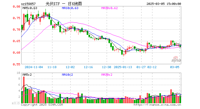 3月5日,光伏ETF(159857)跌1.58%,成交额1.57亿元。当日份额增加7100.00万份,最新份额为34.96亿份,近20个交易日份额增加5.30亿份。最新资产净值计算值为21.77亿元。
