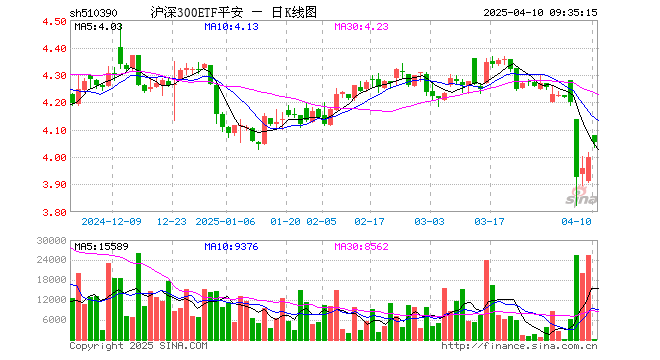 4月10日,沪深300ETF平安(510390)开盘涨2.03%,报4.080元。沪深300ETF平安(510390)重仓股方面,贵州茅台开盘涨0.65%,宁德时代涨4.55%,中国平安涨0.88%,招商银行涨1.31%,美的集团涨1.33%,长江电力跌0.37%,东方财富涨2.44%,中信证券涨1.45%,兴业银行涨0.64%,五粮液涨0.04%。