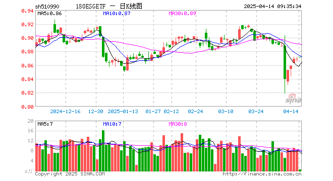 180ESGETF(510990)业绩比较基准为中证180ESG指数收益率,管理人为工银瑞信基金管理有限公司,基金经理为李锐敏,成立(2021-06-18)以来回报为-12.84%,近一个月回报为-2.94%。