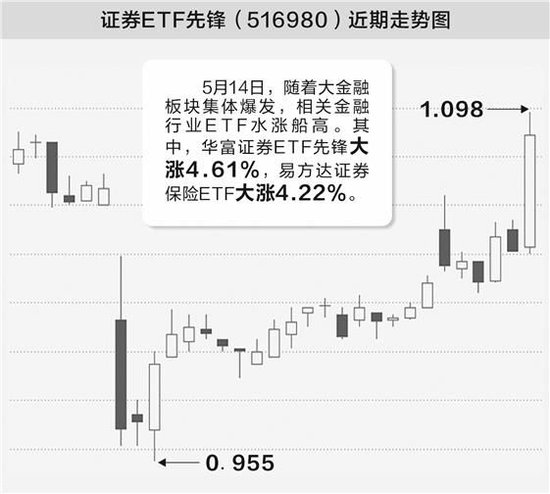 相较而言,银行ETF则更为吸金。比如,截至5月14日,场内规模最大的银行指数ETF——华宝银行ETF场内价格上探至1.626元,创2017年上市以来新高,最近5个交易日持续大额吸金超2.6亿元,最新基金规模升至82.20亿元,站上80亿元大关,规模和价格双创历史新高。