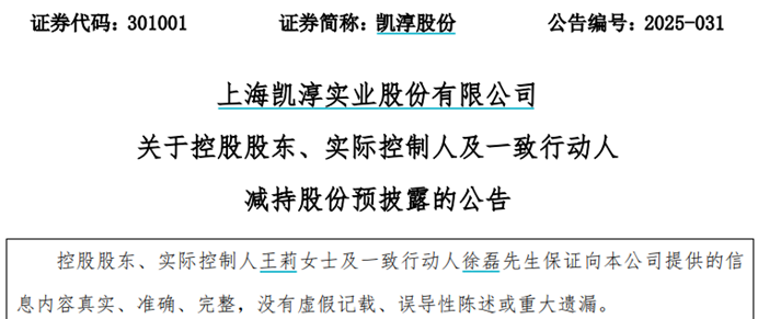 举个例子,凯淳股份(301001.SZ),这是个2021年5月上市的,当初IPO发行价在25元左右(后复权),目前股价32.5元,也没高出来多少,但这不还是迎来了控股股东、实际控制人及一致行动人的减持。