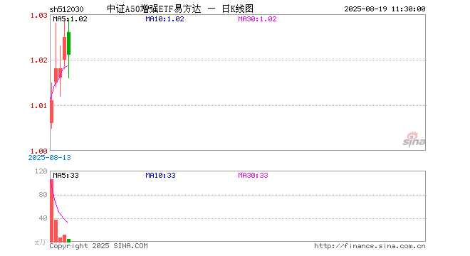 中证A50增强ETF易方达(512030)业绩比较基准为中证A50指数收益率,管理人为易方达基金管理有限公司,基金经理为郭杰,成立(2025-07-28)以来回报为2.24%。