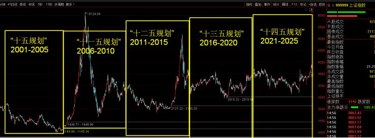 拉长上证指数时间线,我们可以看出,从2006年开始,资本市场对五年规划的反馈就越来越明显。