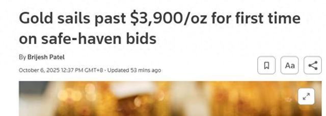 【环球网财经综合报道】近段时间,金价持续攀升,引发市场广泛关注,10月6日现货黄金更是突破3900美元/盎司大关。到了10月7日,这股上涨热潮仍未消退,截至发稿前,现货黄金一度涨至3977.45美元/盎司,而同一日COMEX黄金期货价格一度触及4000美元/盎司,频刷新历史新高。