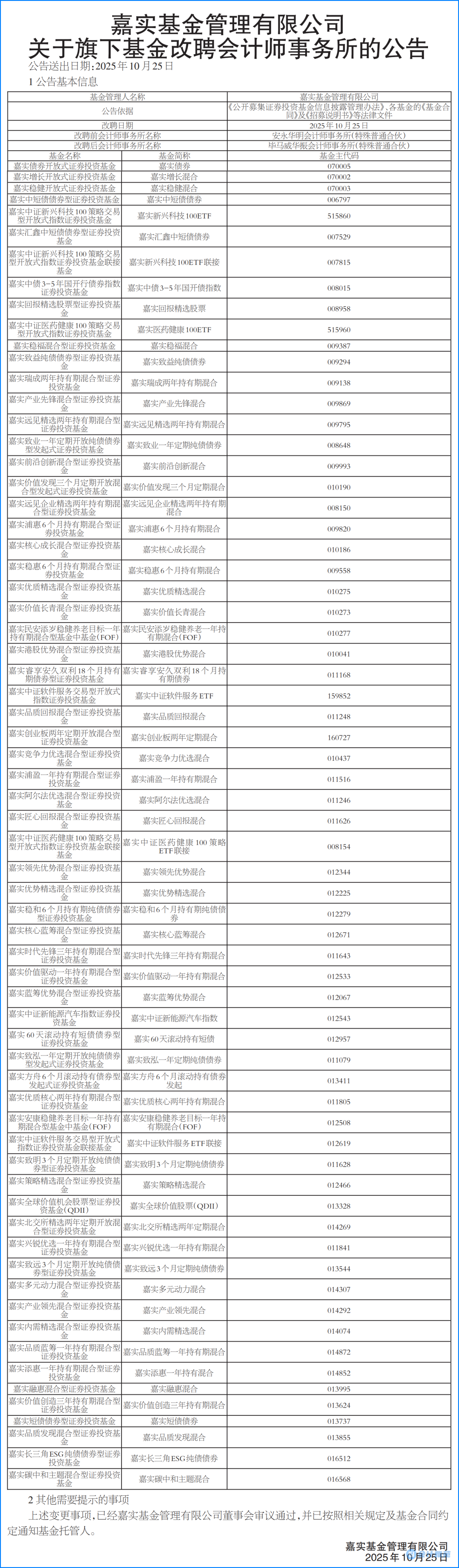 嘉实基金管理有限公司关于旗下基金改聘会计师事务所的公告(一)