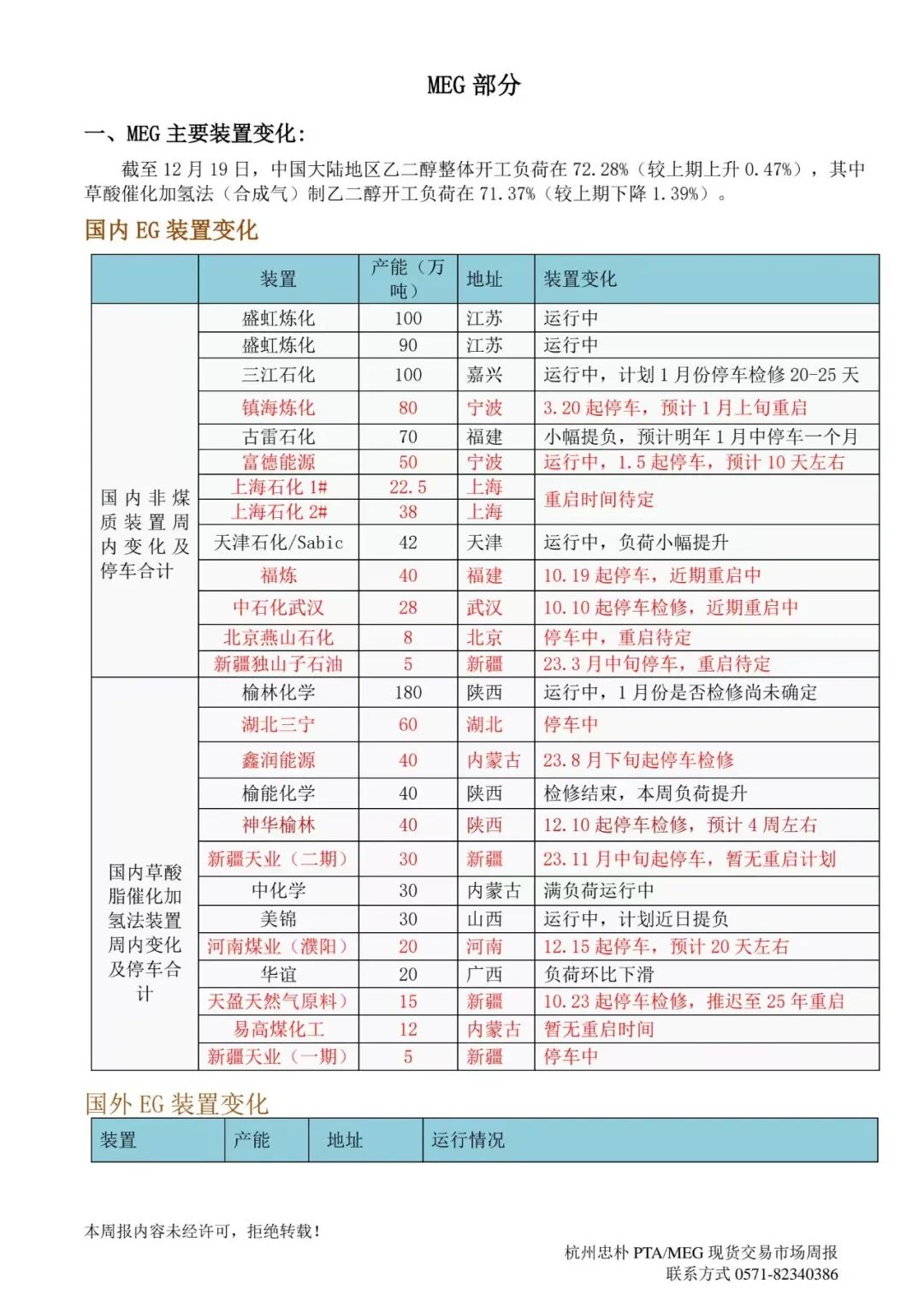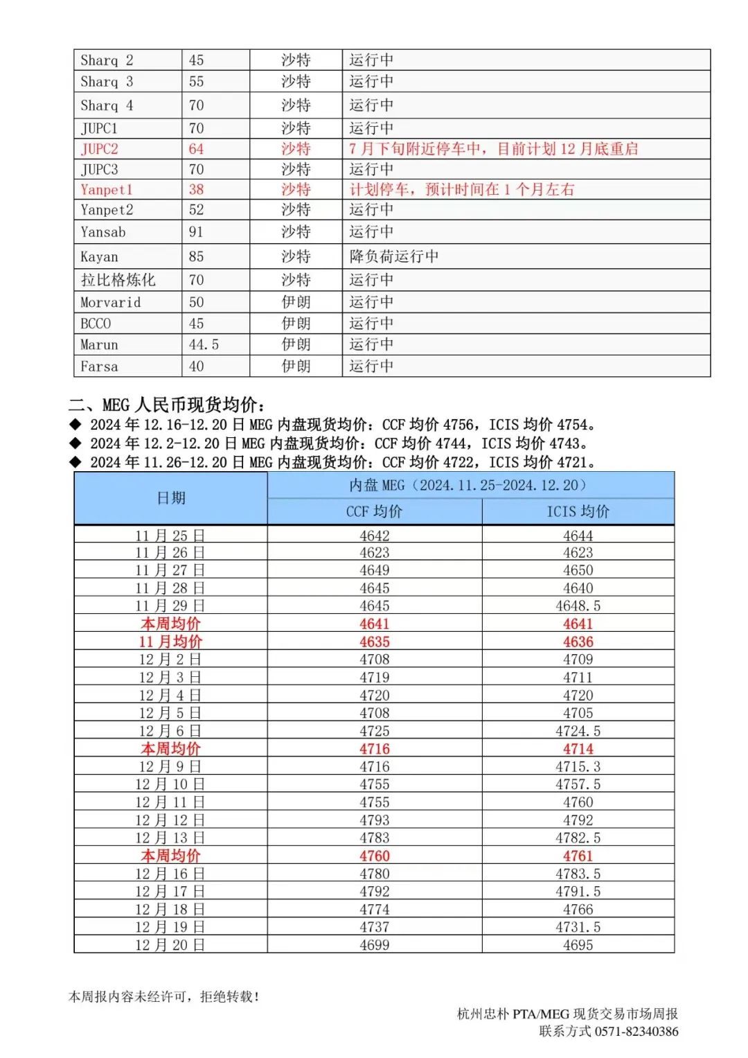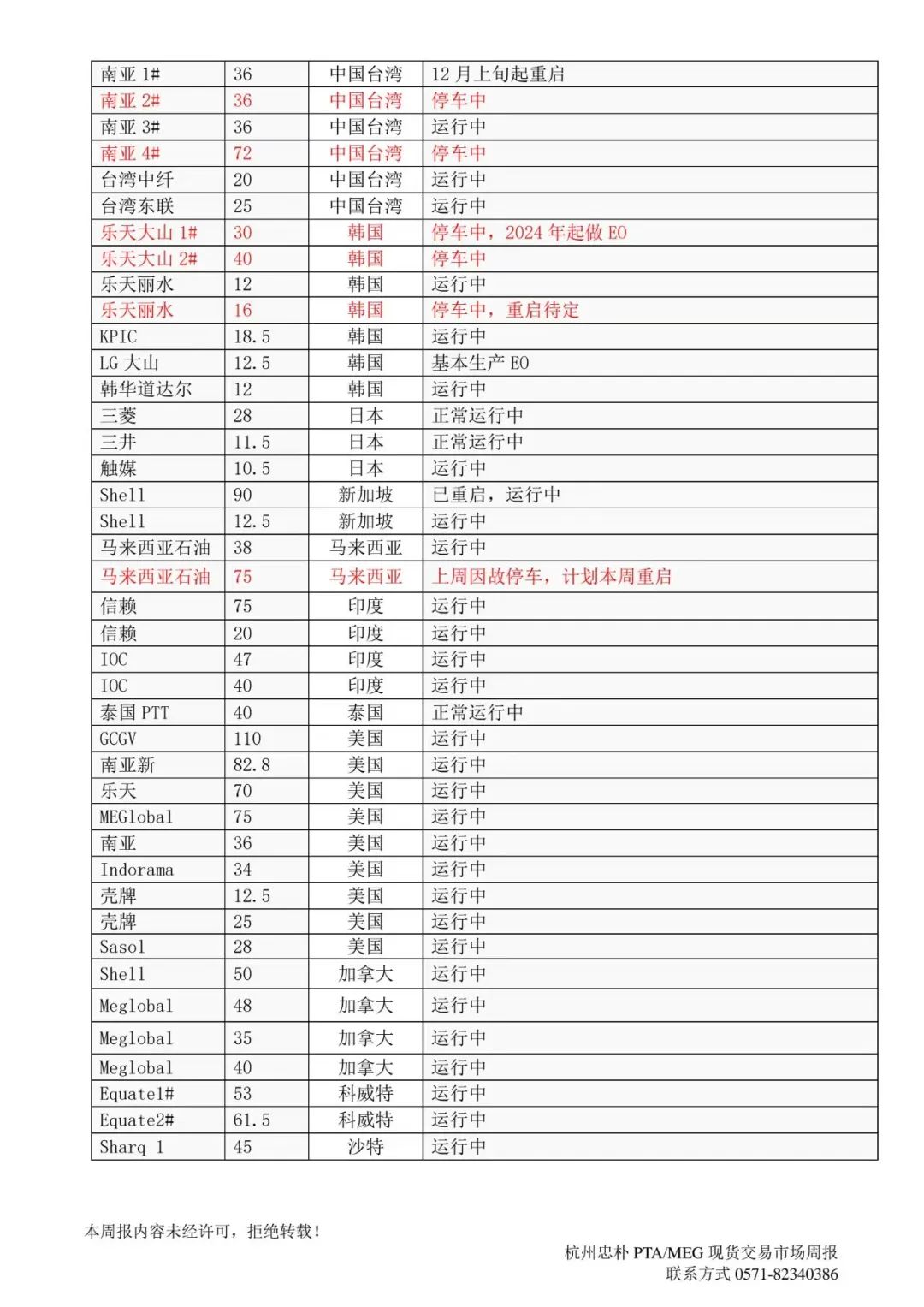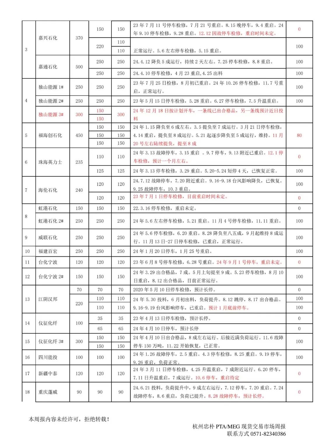 杭州忠朴PTA/MEG/PF现货交易市场周报(2024年12.16--12.20)