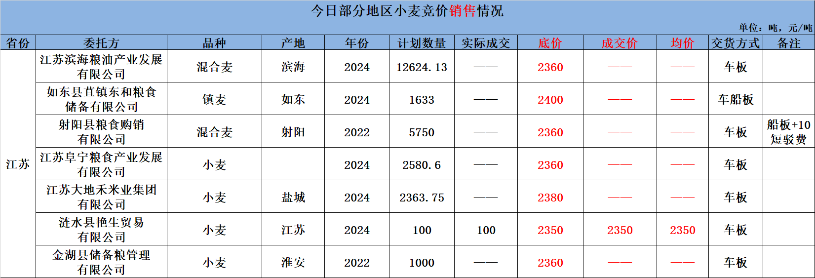 原标题:12月27日江苏省地方小麦交易结果 来源:南方小麦网