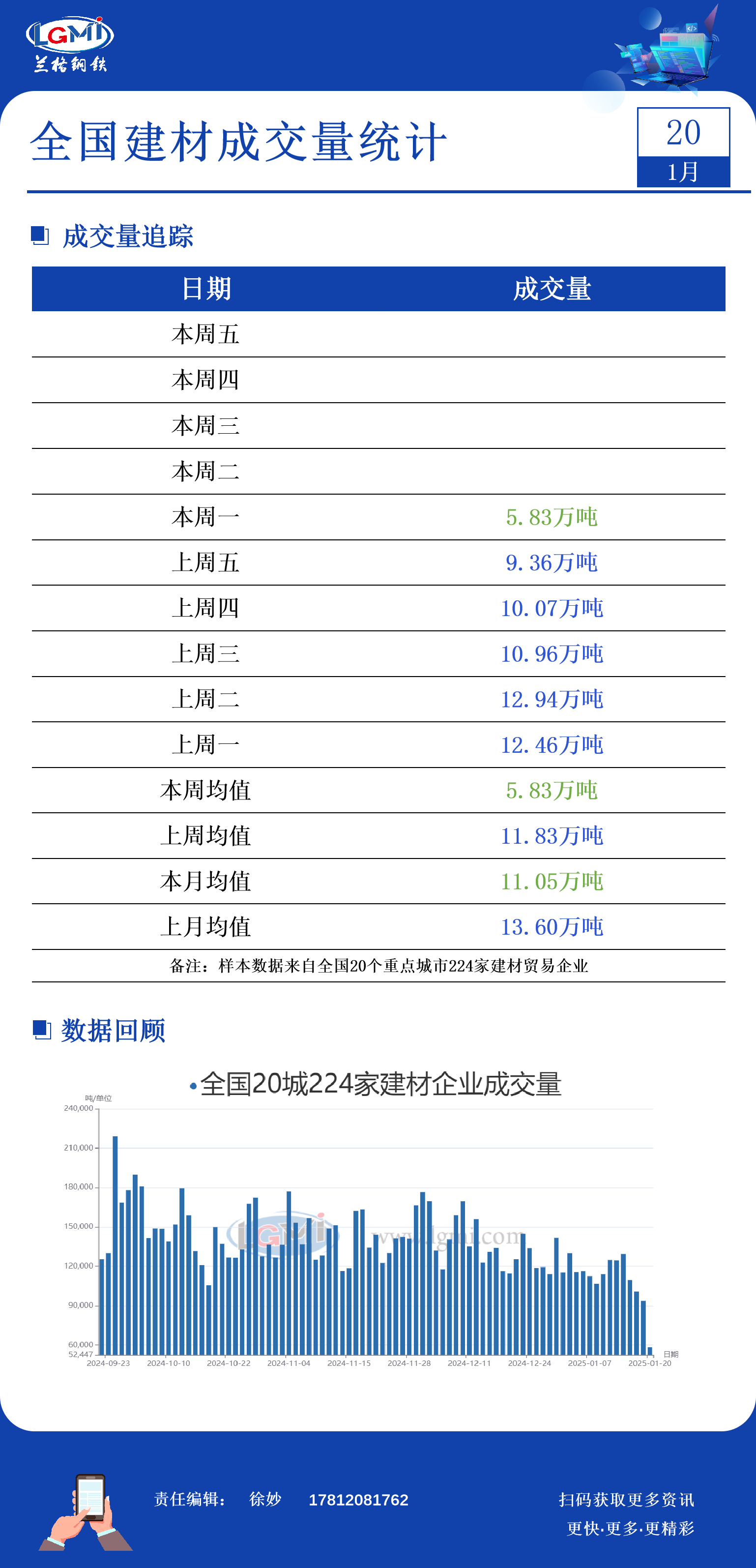 1月20日全国建材成交量大幅减少