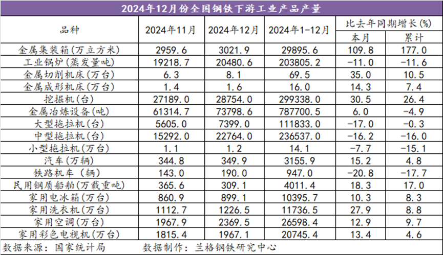 兰格追踪:2024年1-12月份全国钢铁下游工业产品产量