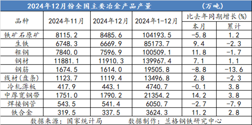 兰格追踪:2024年1-12月份全国主要冶金产品产量