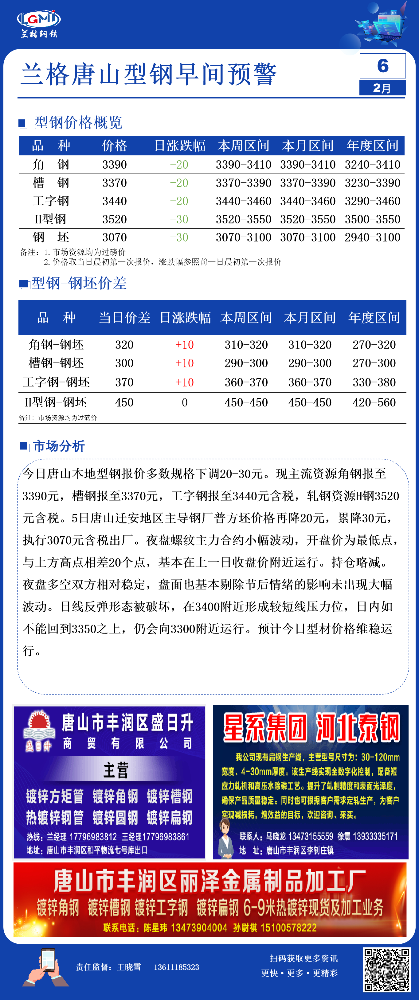 2月6日兰格唐山型钢早间预警