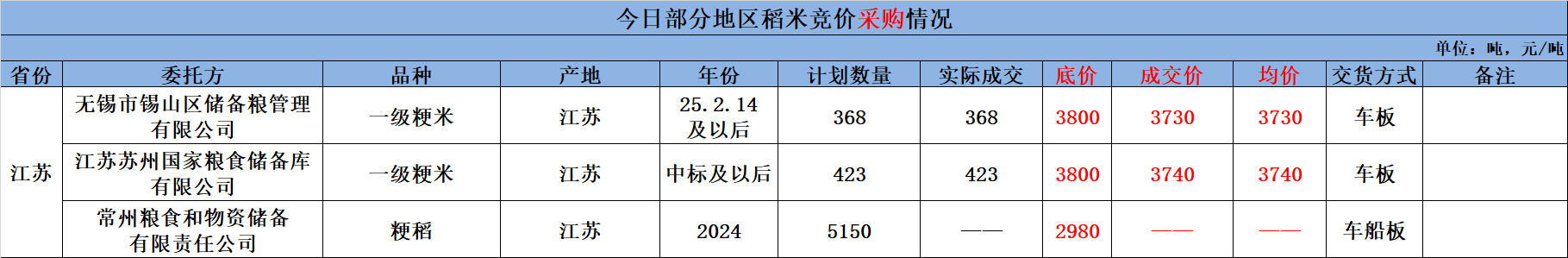 原标题:2月14日江苏省地方稻米交易结果 来源:南方小麦网