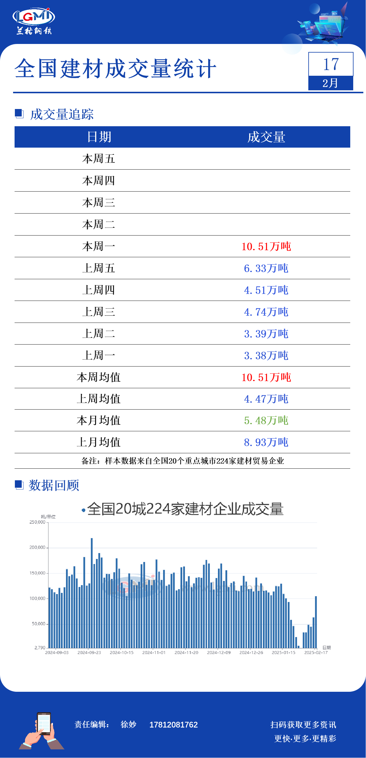 下一篇:兰格钢铁:2月17日全国重点城市钢材成交量较上个交易日上升