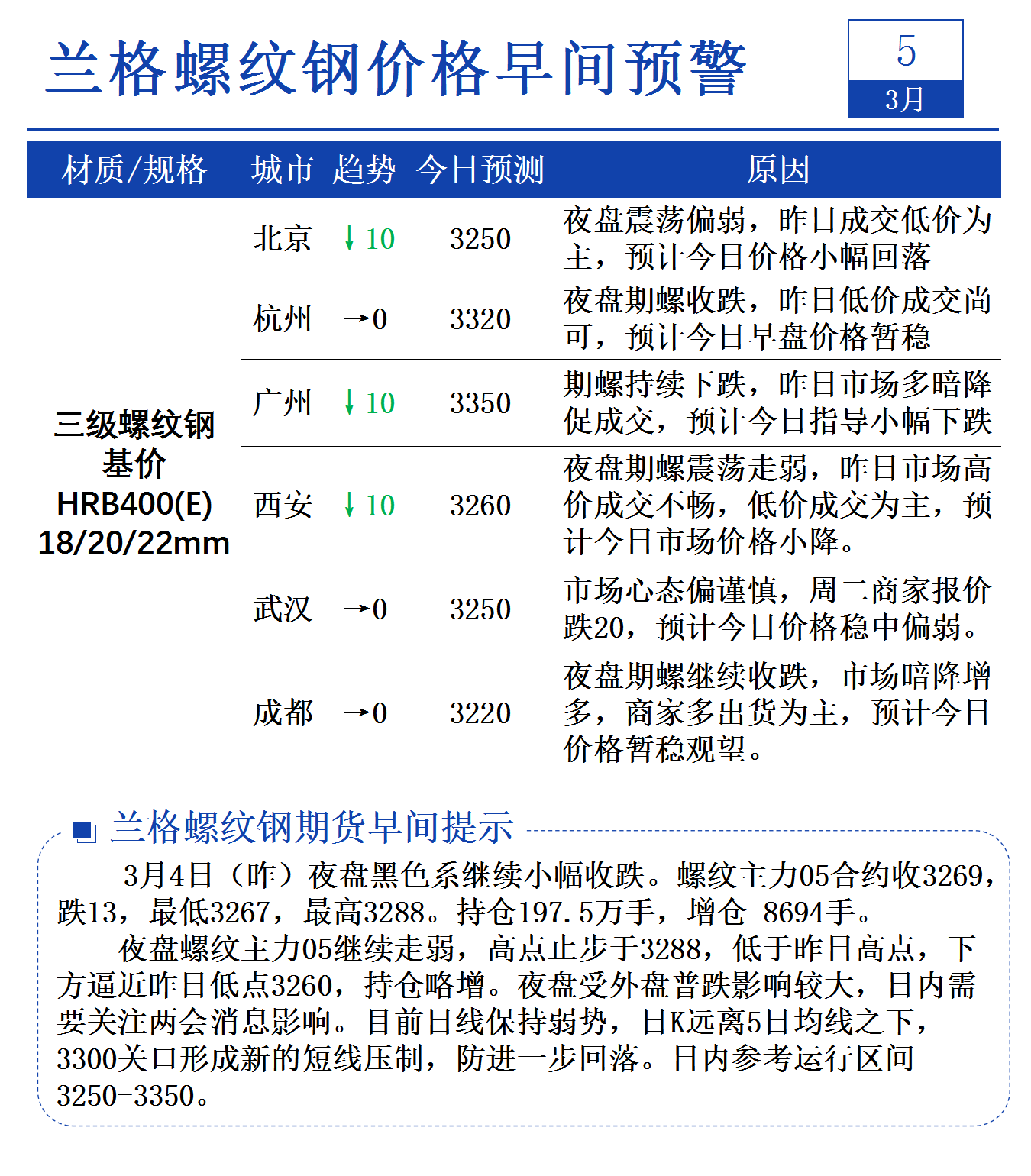 3月5日兰格螺纹钢价格早间预警