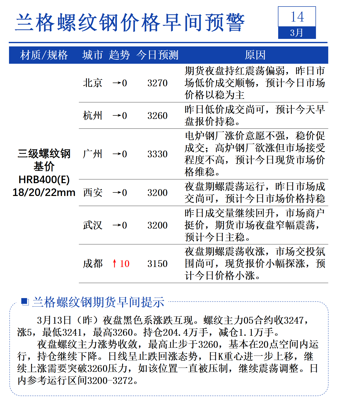 3月14日兰格螺纹钢价格早间预警