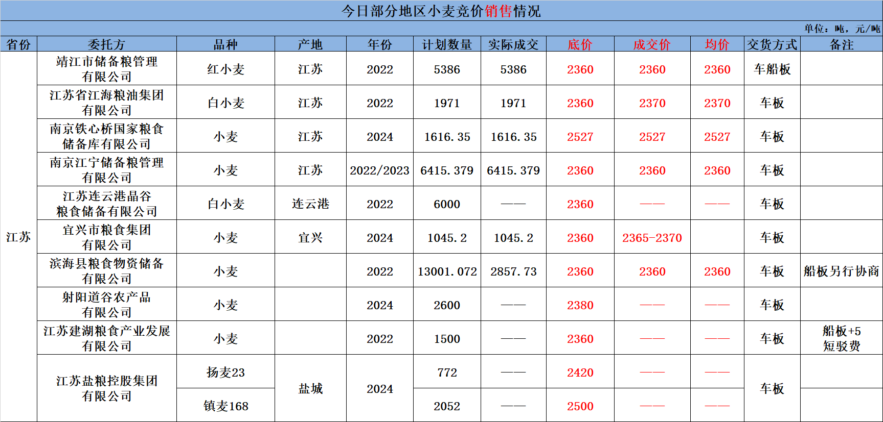 原标题:3月28日江苏省地方小麦交易结果 来源:南方小麦网