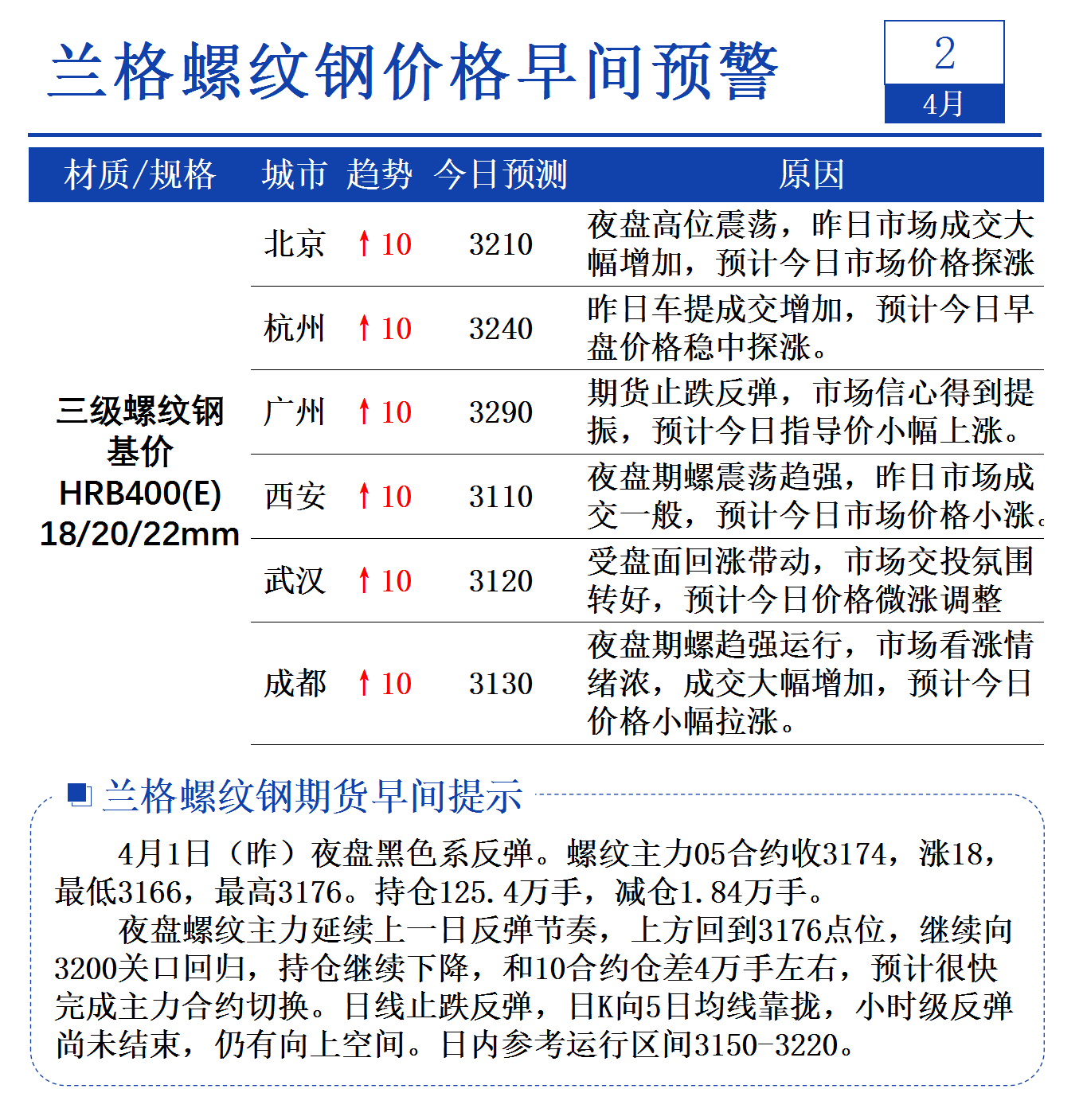 4月2日兰格螺纹钢价格早间预警