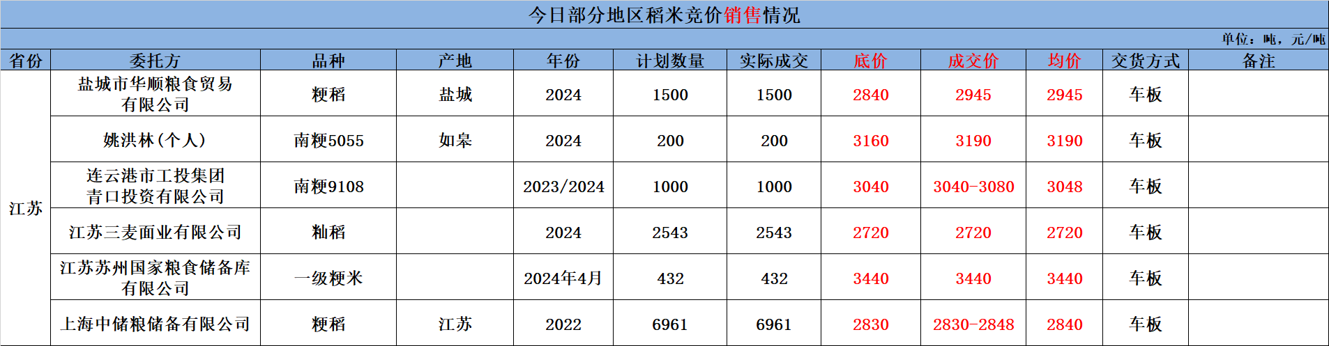 原标题:4月11日江苏省地方稻米交易结果 来源:南方小麦网