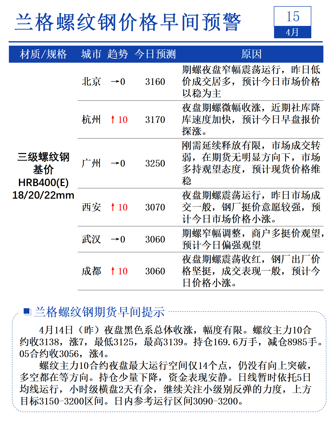 4月15日兰格螺纹钢价格早间预警