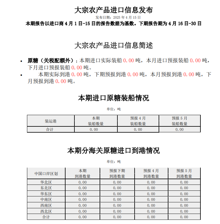 商务部 :关税配额外原糖预报到港量连续第四个月为0