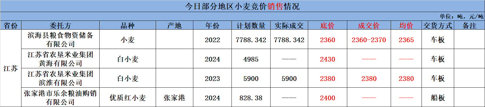 原标题:4月22日江苏省地方小麦交易结果 来源:南方小麦网