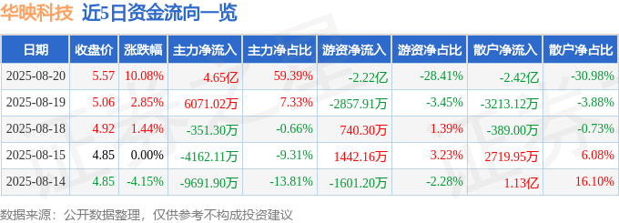 8月20日的资金流向数据方面,主力资金净流入4.65亿元,占总成交额59.39%,游资资金净流出2.22亿元,占总成交额28.41%,散户资金净流出2.42亿元,占总成交额30.98%。