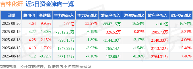 8月20日的资金流向数据方面,主力资金净流入2.0亿元,占总成交额33.27%,游资资金净流出9947.15万元,占总成交额16.54%,散户资金净流出1.01亿元,占总成交额16.74%。