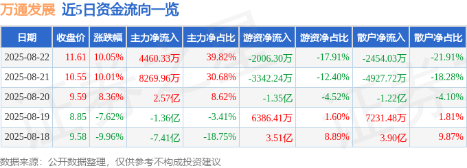 8月22日的资金流向数据方面,主力资金净流入4460.33万元,占总成交额39.82%,游资资金净流出2006.3万元,占总成交额17.91%,散户资金净流出2454.03万元,占总成交额21.91%。