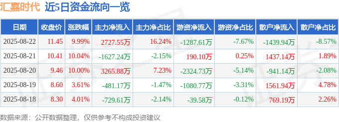 8月22日的资金流向数据方面,主力资金净流入2727.55万元,占总成交额16.24%,游资资金净流出1287.61万元,占总成交额7.67%,散户资金净流出1439.94万元,占总成交额8.57%。