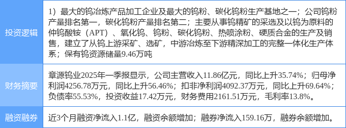 该股为有色 · 钨,有色金属概念热股,当日有色 · 钨概念上涨3.28%,有色金属概念上涨0.6%。