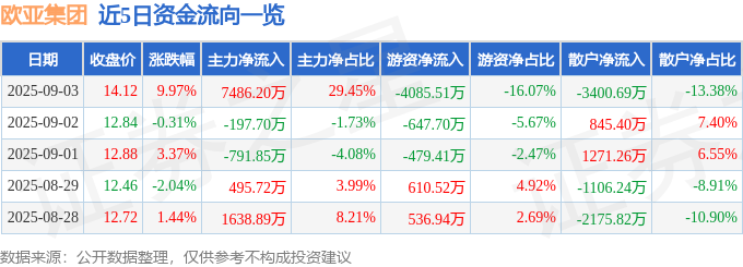 9月3日的资金流向数据方面,主力资金净流入7486.2万元,占总成交额29.45%,游资资金净流出4085.51万元,占总成交额16.07%,散户资金净流出3400.69万元,占总成交额13.38%。