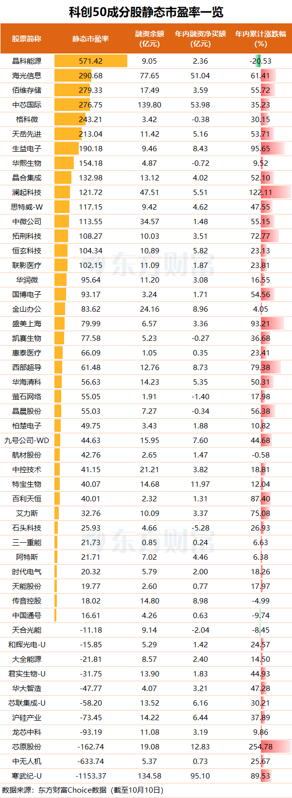 由于10月10日市场广泛调整,科技股股价大规模下行,所以部分个股已经低于300倍市盈率。根据国融证券10月10日公布的数据,10日收盘后海光信息的本周静态市盈率为290.68倍,中芯国际则为246.747倍。