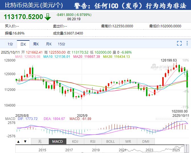 比特币一度跌破110000美元,过去24小时内下跌9.16%。
