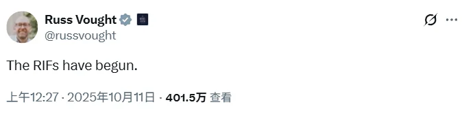 据央视新闻报道,白宫行政管理和预算办公室主任拉塞尔·沃特在社交平台上表示,联邦政府雇员裁减程序(RIFs)已正式启动。